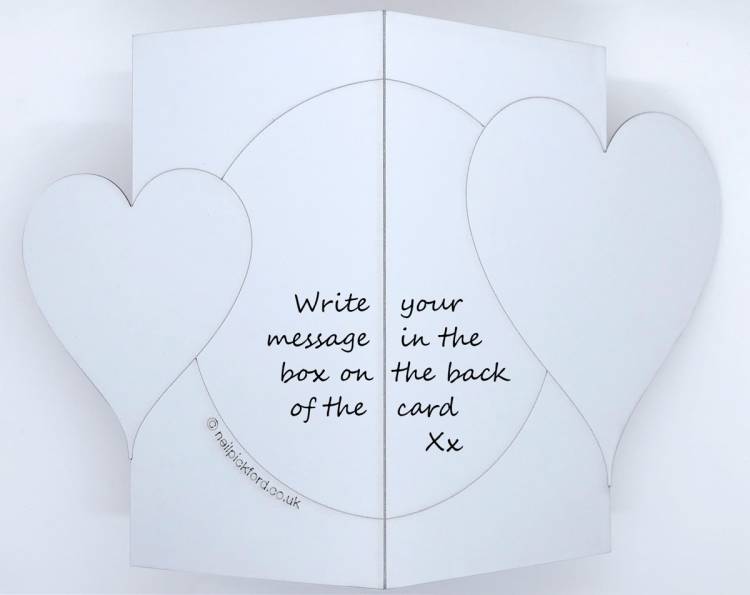 Card opens from flat into a box rather than the conventional edge fold • see video • Rather than the inside, you should write your message on the back of the card - in the box provided